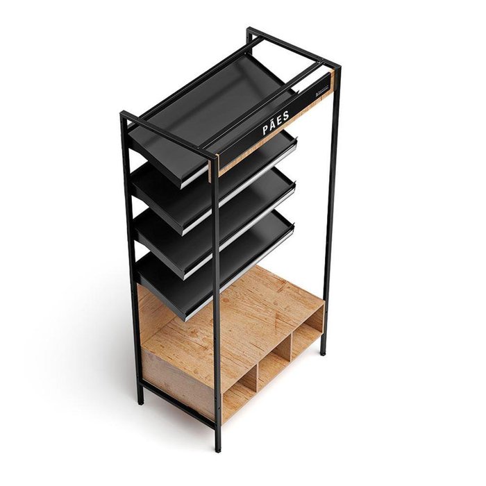 Vasca Estante de Pães para Padaria e Confeitaria MEPA100 Gelopar. Exposição de pães e produtos em condição ambiente. Revestimento Interno: Base em MDF sobre os nichos, para exposição de mercadoria. Revestimento Externo: Estrutura em tubo de metalon com pintura epóxi. Iluminação: LED com interruptor. Prateleiras: 4 níveis em aço pré-pintado preto, com anteparo e porta etiquetas. Pés niveladores. Nichos inferiores para embalagens ou exposição de mercadoria. Produto pré-montado, com encaixe rápido. Com perfeito alinhamento com a Linha Aurora. PESO: 60 Kg. CONSUMO: 0,0012 kWh/dia. DIMENSÕES (CxAxL):100x202,8x61cm. Equipamento certificado conforme Portaria Inmetro nº 371/2009. Vasca Estante de Pães para Padaria e Confeitaria MEPA100 Gelopar é na Atau.