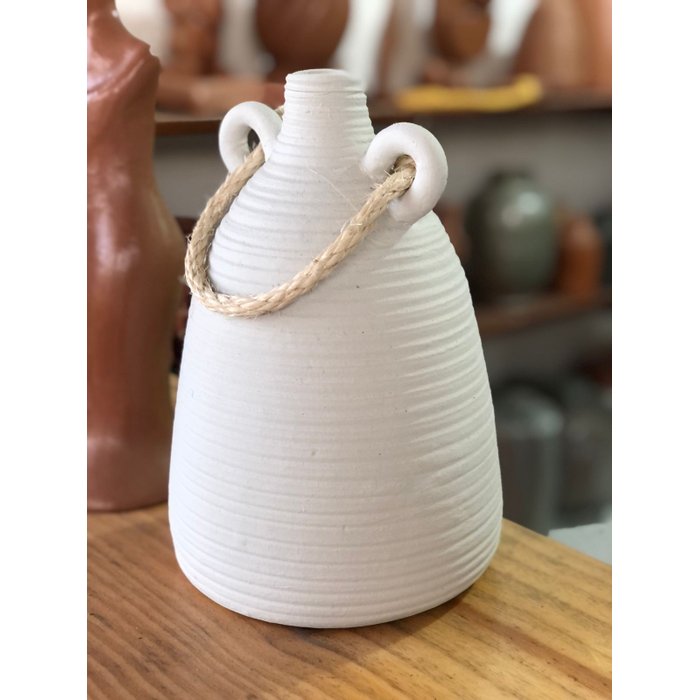 Vaso Artesanal Branco Corda 2 Alças Pó da Terra G 26x19cm
