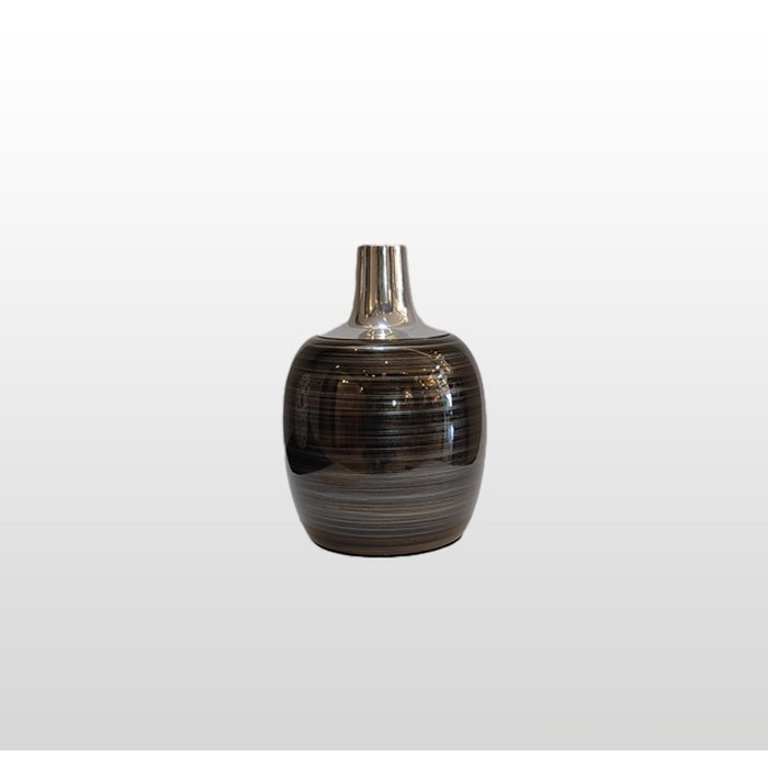 DescriçõesCrie espaços autênticos e singulares. Utilize vasos na decoração do seu ambiente.Especificações Vaso em cerâmica grafite com prata Referencia3199   DimensõesØ 18 cm x A 17 cm    Peso: 1.198Kg   Produto Nacional