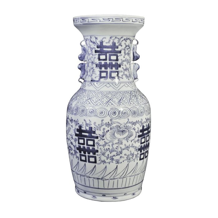Vaso Chinês Azul e Branco "dupla Felicidade" - Coleção Classic: Uma Celebração da Tradição Milenar Azul e branco