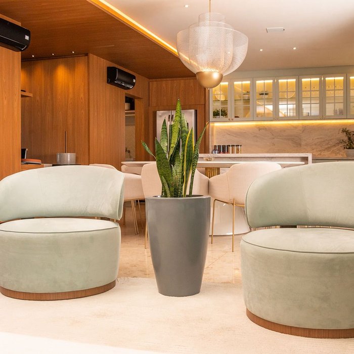 Sugestão de plantas para ambiente interno: Lírio da Paz, Pacova e Zamioculca.