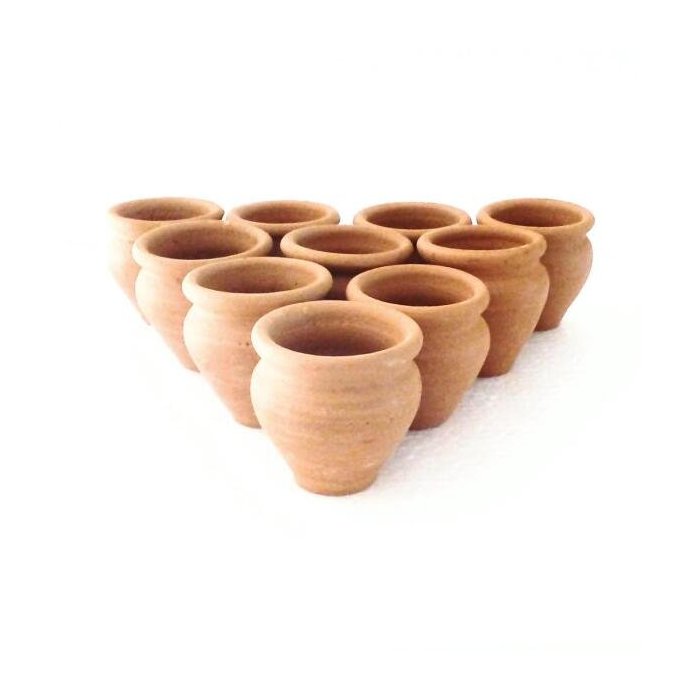 Vaso De Barro Pequeno Kit 10 Un Faça lindos arranjos variados com suculentas ou outra planta de sua preferência. Não tem furo no fundo. Quantidade 1 kit com 10 unidades. Diâmetro 7 cm. Altura 6 cm. Circunferência no meio da peça 25 cm. Peso unitário: 0,200 gramas. Observação: por ser um produto artesanal, o peso, as medidas, a cor e outras características podem variar.