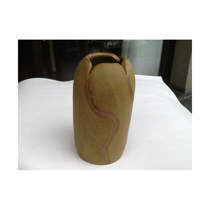 Vaso em cerâmica, feito a mão em torno , queimado em alta temperatura. Cor mostarda em baixo esmalte. Pode receber água para flores. Peça única feita com esmero, para uma pessoa que curte o diferencial .