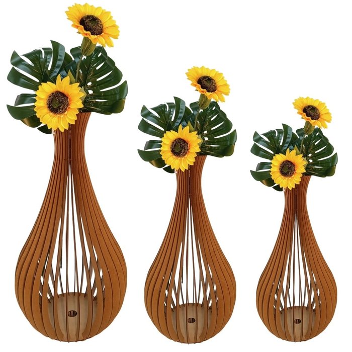 Vaso de Chão Decorativo Grande Gotas de Orvalho Mdf:mdf Cru/kit com 3 - 90x40cm, 75x40cm e 60x30cm