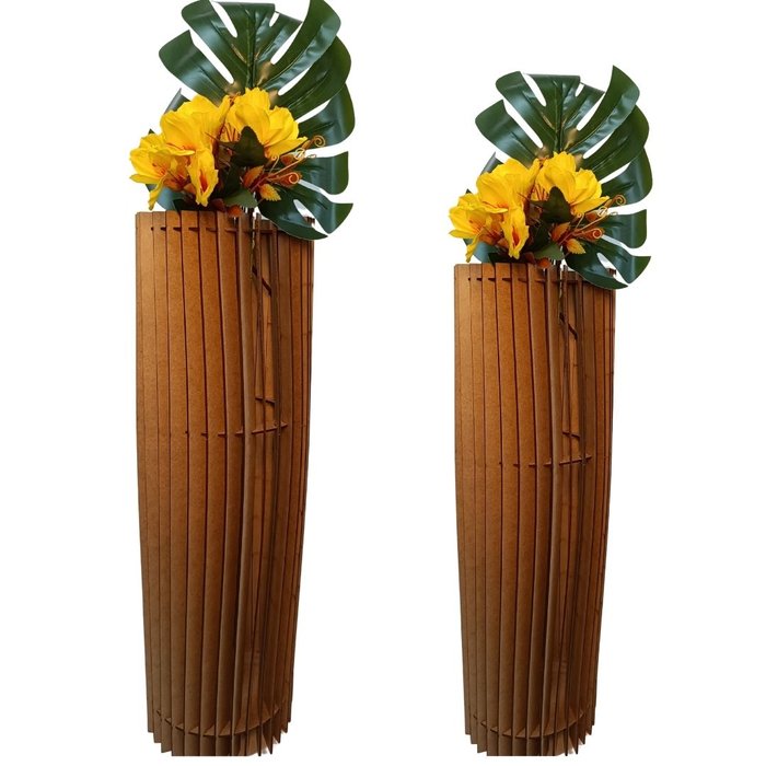 Vaso de Chão Decorativo Grande Torre -:mdf Cru/kit com 2 - 70x20cm e 60x20cm
