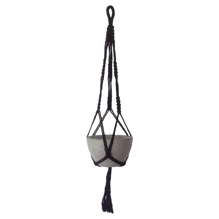 Vaso de Cimento com Suporte de Macramê para pendurar plantas Cor do Suporte:Vaso + Suporte PRETO
