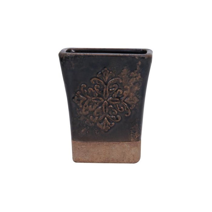 Muito luxo com aquele clássico que nunca sai de moda para a decoração da sua casa ou de sua festa. Vaso de cerâmica com acabamento de extrema qualidade, na cor preta, com desenho em relevo no centro e detalhes rustico exclusivamente desenvolvidos para a peça. Ideal para decoração de ambientes internos e para decoração de festas, aniversários e casamentos. A escolha perfeita para quem procura glamour e sofisticação, sem exageros.