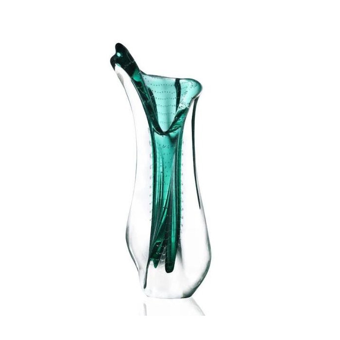 Vaso De Murano São Marcos - Cristal Verde Esmeralda/Transparente 54cm Verde Esmeralda/Transparente