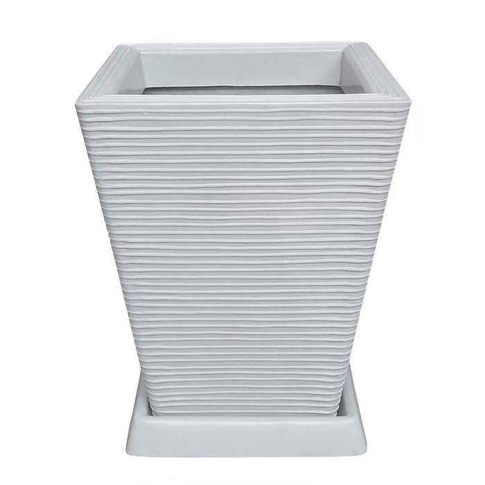 Vaso de Planta Quadrado Decorativo Polietileno 45x35 + Prato Cinza