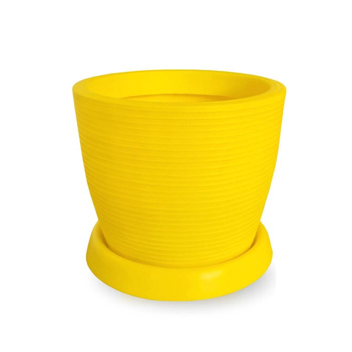 Vaso de Planta Redondo de Polietileno 30x30 + Prato Amarelo Amarelo