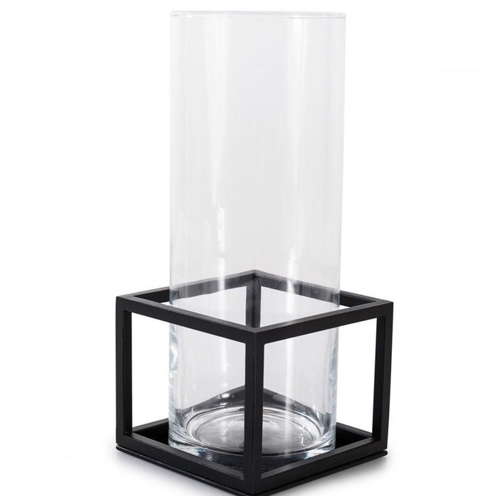 Vaso de Vidro com Armação em Aço Preto - Linha Frame - 31 Cms Preto