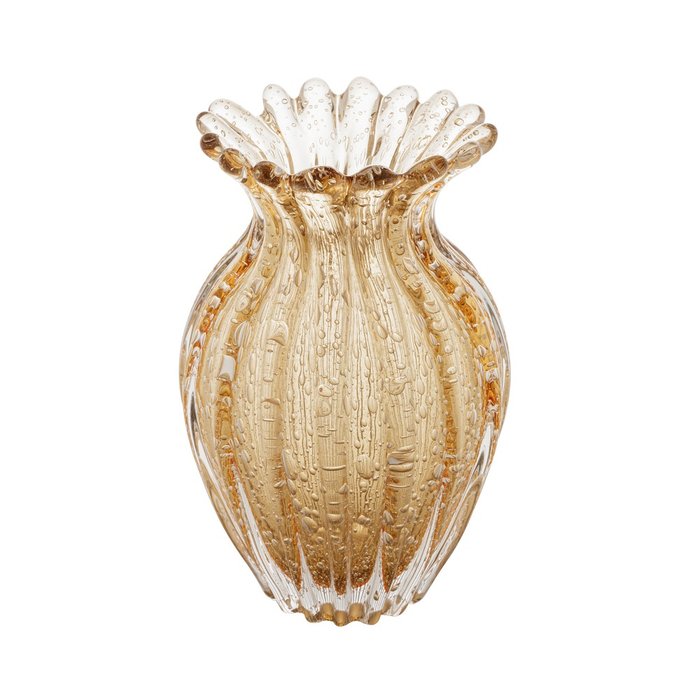 Vaso de Vidro Murano Canelado Italy Âmbar 23,5x15,5cm Lyor