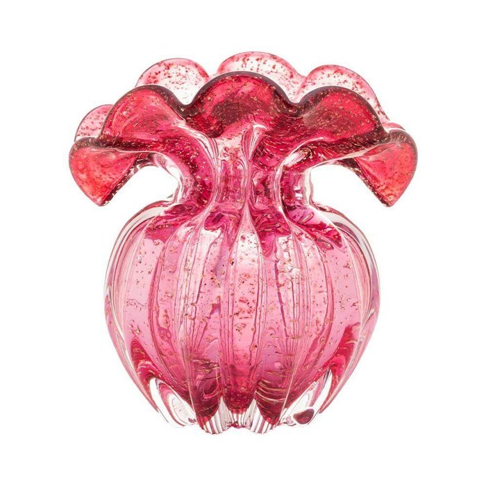 Vaso de Vidro Murano Italy Rosa e Dourado Lyor 15x13x16cm