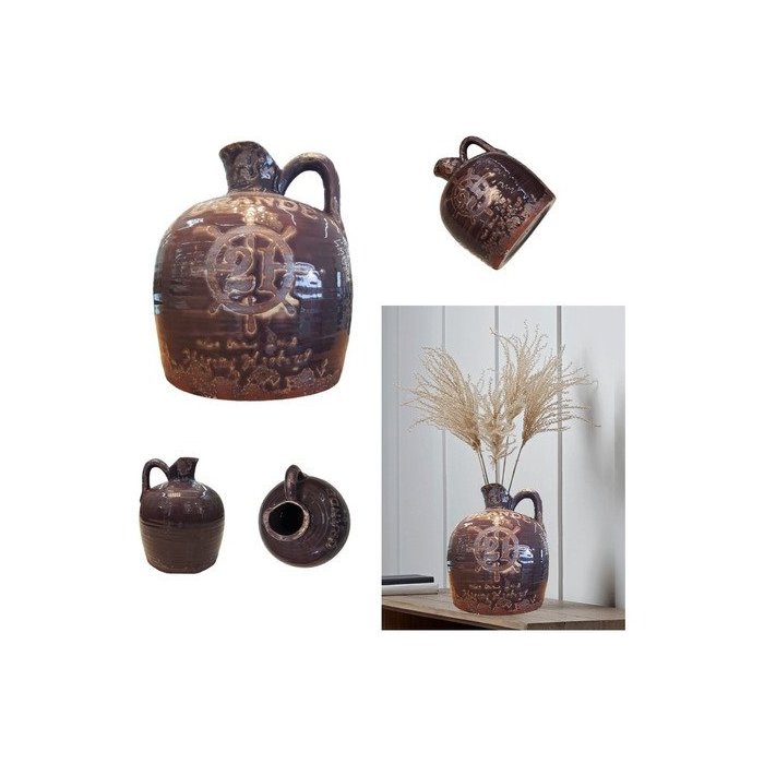 Vaso Decorativo Jarro Cerâmica Rústico Leme Navio 27 X 21 Rústico