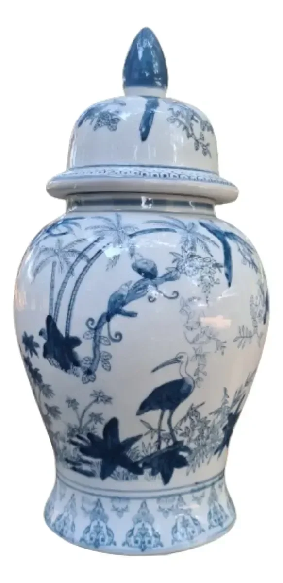 Vaso Decorativo Porcelana Azul e Branca 49x25 Azul e Branca