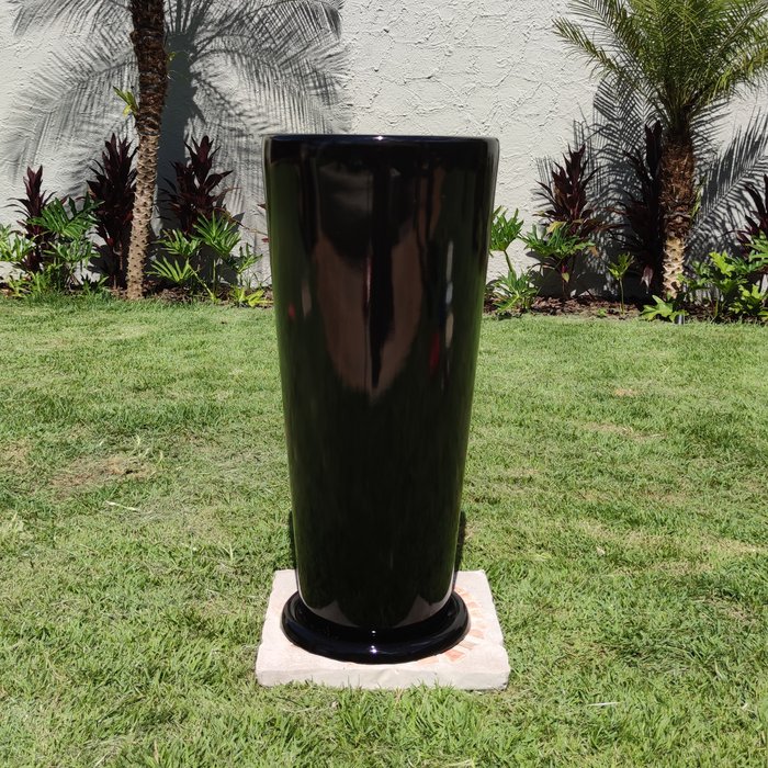 Vaso E Prato Decorativo Para Plantas e Flores fibra De Vidro Estilo Vietnamita 80x40cm Preto