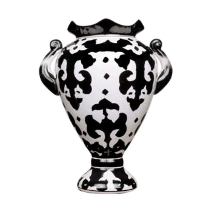 Vaso em cerâmica Dolomita acabamento Glaze cor branco e preto (21 x 16,5 x 27,5 cm)