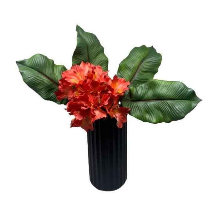 Vaso preto preto alto com flores e plantas artificiais tipo folhagem emborrachadas, vaso super moderno e cheio de estilo.