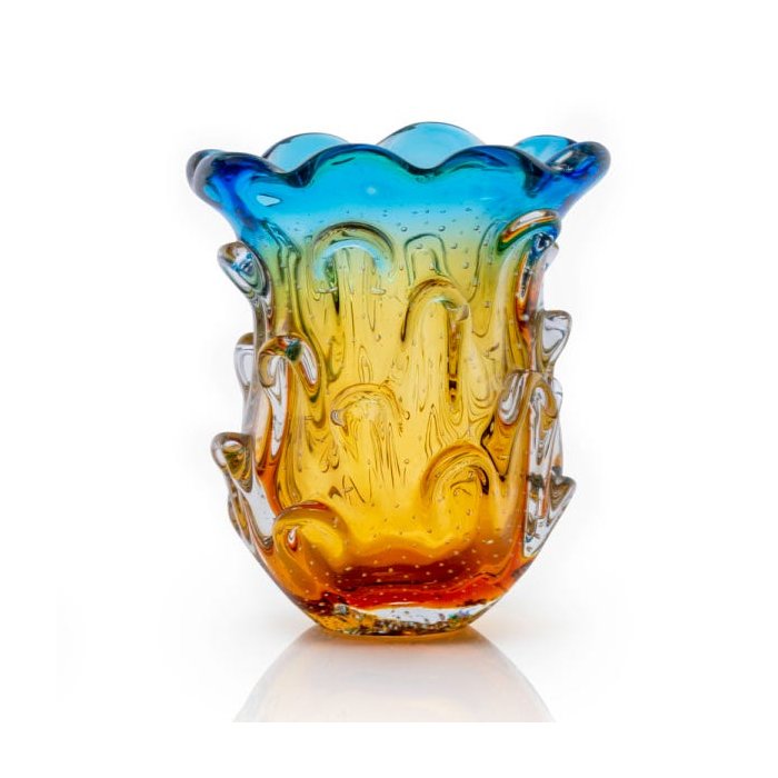 Vaso Em Cristal Murano Água Marinha E Âmbar - São Marcos