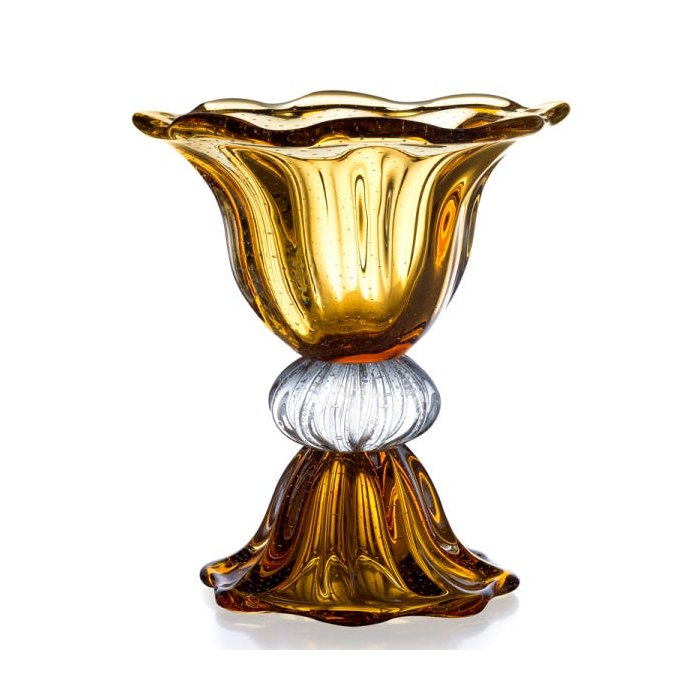 Vaso Em Cristal Murano Âmbar - Assinado - São Marcos
