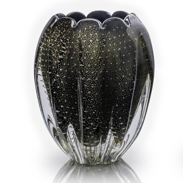 Conteúdo Da Embalagem: 01 Vaso Em Cristal Murano Pretoe Ouro 24 K - São Marcos