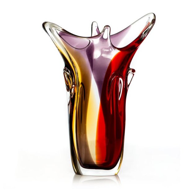 Vaso em Cristal Murano Vermelho e Âmbar - São Marcos Vermelho e Âmbar