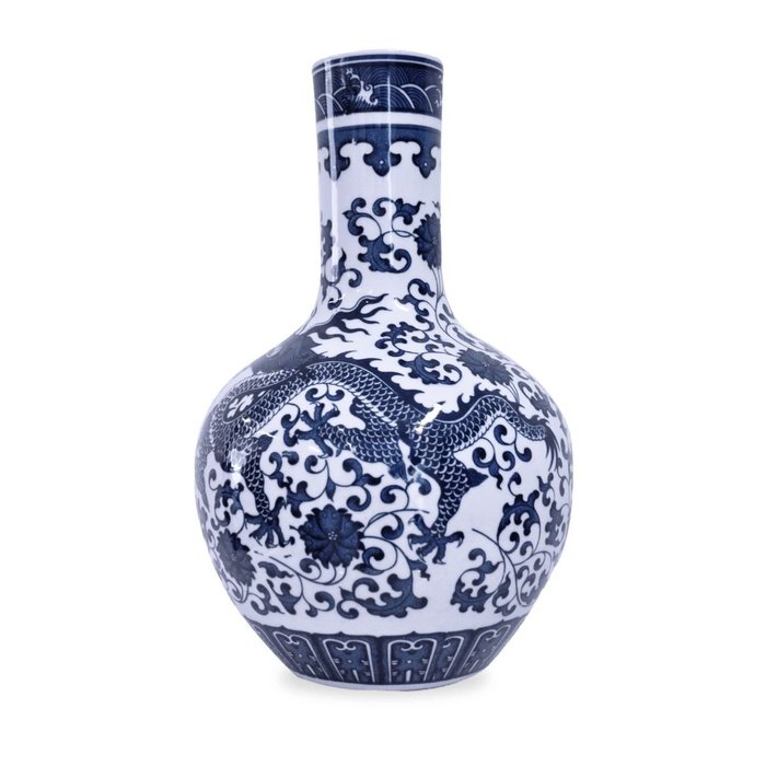 Vaso em Porcelana Chinesa, com Pintura de Dragão. Peça Branca com Pintura em Azul