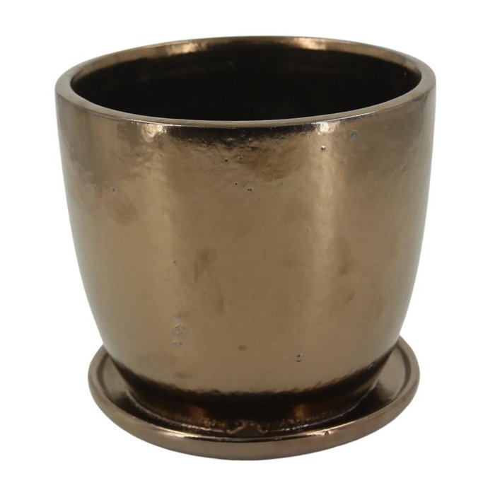 Vaso Estilo Vietnamita C/prato Cerâmica Rico Ouro 22x20cm