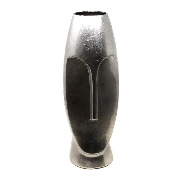 Vaso Face Decorativo Escultura Rosto Cerâmica Prata 51cm Prata