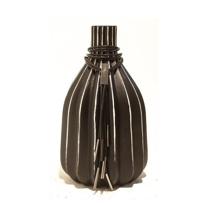 Vaso/Garrafa Preta Com Pingente Metal Prata M Preto