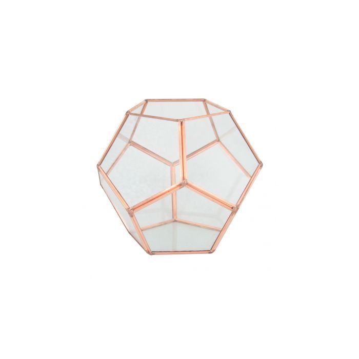 VASO GEOMETRICO DE METAL E VIDRO ROSE 14CM X 14CM X 12CM
