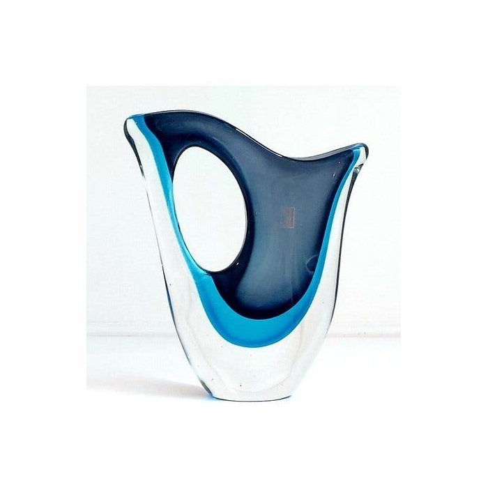 Vaso Murano Degrade Cristais São Marcos Azul Aquamarine tam Gde