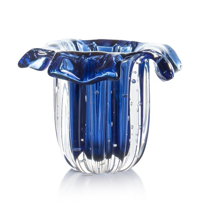 FICHA TÉCNICA: Vaso Venlo em cristal de murano. Feito em processo artesanal. Peça com acabamento exclusivo, muito utilizado como porta pincéis de maquiagem. Ideal para mesa de escritórios, consultórios, clínicas, salão de beleza e penteadeiras e closet. O Murano é um tipo sofisticado de vidro, resultado de uma técnica artesanal Italiana. Todos os nossos Muranos, são originais feitos através desse processo. São feitos por artesões especializados a partir de movimentos manuais e de sopro. O Murano é um material muito mais luxuoso e único, do que cristais comuns. Composição: 01 Vaso Murano Salvador "P" Night Blue Dimensões: Altura: 12(cm) Largura: 15(cm) Comprimento: 15(cm) Material: Cristal de Murano.