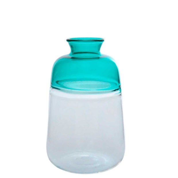 Vaso Nordico em Vidro Verde Agua/Transparente 9x14x9cm