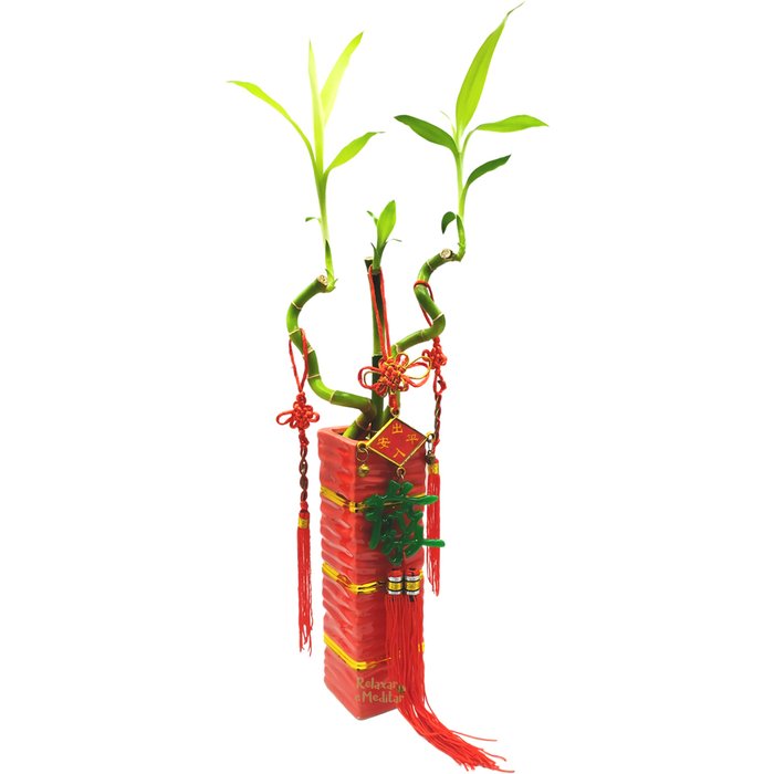 Usado com frequência nas práticas de Feng Shui, o Bambu da Sorte tem uma energia muito favorável, pois simboliza a próspera união entre dois elementos: a água e a madeira. Quando ele é oferecido como presente, costuma receber um laço vermelho, para que a energia do fogo seja adicionada, de forma que juntos, os três elementos possam atrair a energia positiva (Chi) para o ambiente.
