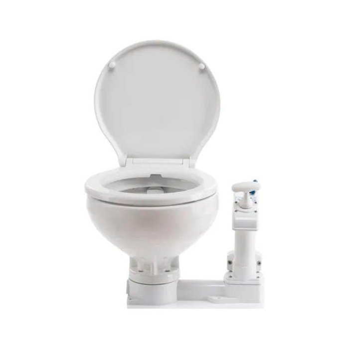 Vasoem louça branca, com assento e tampa em plástico brancode grande resistência, acionamento por bomba manual. Ideal para ser usado em barcos, lanchas, veleiros, motorhomes e similares.