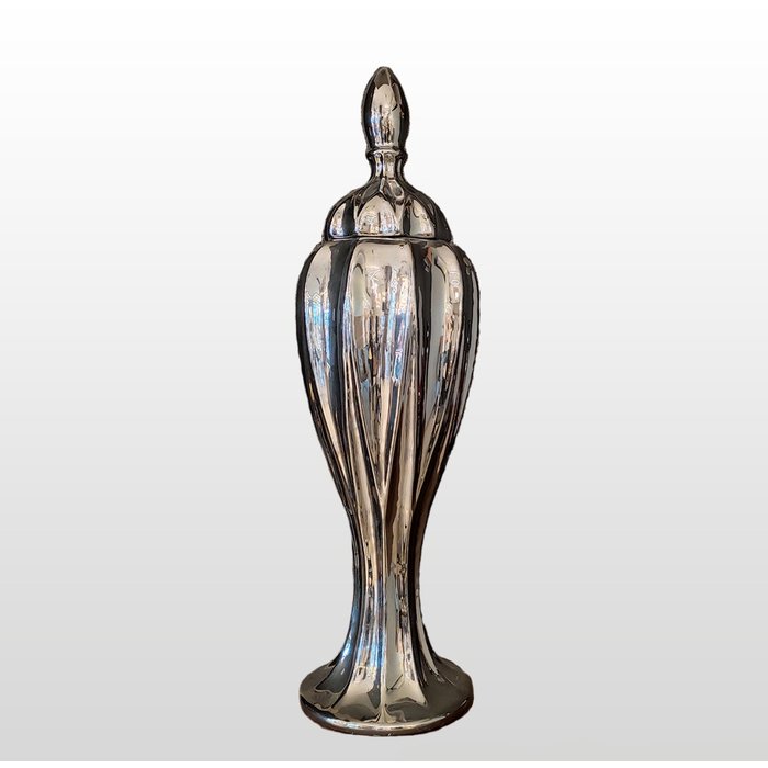 DescriçõesLeve mais imponência ao seu ambiente com vasos na decoração do seu lar.Especificações Vaso em ceramica cromada com tampa Referencia1269   DimensõesØ17cm x 63cm    Peso: 2,216kg   Produto Nacional
