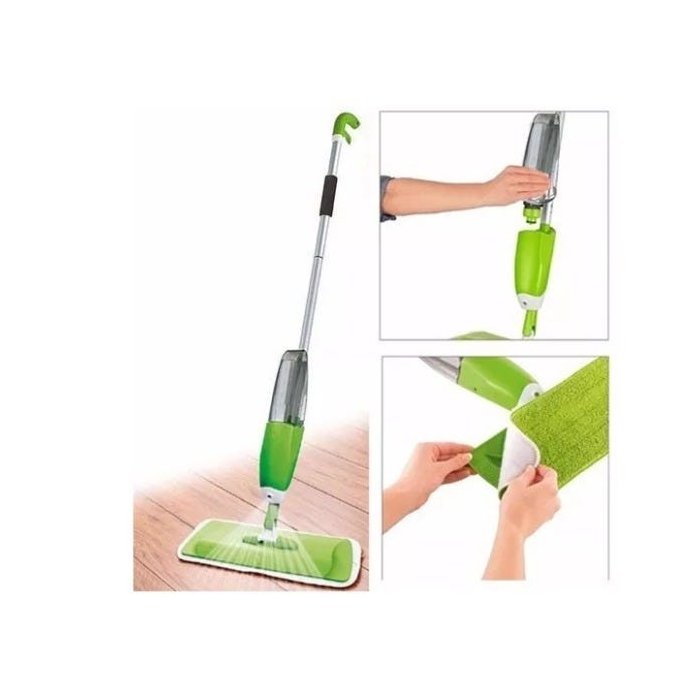 O Spray Mop faz com que a limpeza dos pisos em geral seja muito fácil. Não é necessário encher um balde grande de água para limpar os pisos eficazmente, ele está sempre pronto para ser usado. O Sistema do Gatilho de Pulverização Spray garante que o produto de limpeza seja aplicado no piso de forma econômica e controlada. O Spray Mop é ideal para deixar seu piso rapidamente limpo de modo muito mais fácil! Design Inovador Desenvolvido para Limpeza de Pisos de Madeira e Pisos em Geral Cabo em Aço Inoxidável Sistema Inovador de Gatilho Borrifador Base Giratória para a Limpeza em Áreas de Difícil Acesso, Alcança os Lugares mais Difíceis Limpeza diária ou sempre que necessário, muito prático de usar Reservatório com Capacidade de 650ml p/ Produtos de Limpeza Não usar solventes ou removedores no reservatório Pad Limpadora (almofadinha) de Tecido em Microfibra Pad (almofadinha) Reutilizável pode ser lavado em Máquina de lavar roupa (não usar amaciante) Montagem e Desmontagem Rápida, Fácil de Guardar Pad (almofadinha) com Sistema de Fixação para/ Fácil Retirada e Troca do Refil Pad (almofadinha) também disponível para Reposição (vendido separadamente) Pad (almofadinha) Lavável para maior durabilidade (Média 12 meses) Dispensa o uso de panos Altura do Cabo para maior conforto 1,28 M Perfeito para Aplicação dos Produtos de Limpeza de sua Preferência Atrai e Agarra a Sujeira Absorve Líquidos com Eficiência Revolucionários Fios de Microfibras que Atraem e Absorvem o Pó. Cor : Verde Itens inclusos: Cabo com gatilho, Reservatório, Base, Pad.