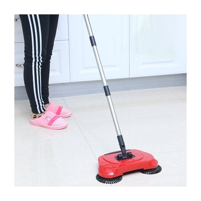 Vassoura Mágica excelente aliada na limpeza de casa e ambiente de trabalho. Ao mesmo tempo que ela varre, vai coletando toda sujeira e armazenando em um compartimento acoplado na vassoura.Com isso, o trabalho da limpeza se torna muito mais fácil, pois ao final é só tirar a sujeira do compartimento.O cabo da vassoura é de aço inoxidável e desmontável.A vassoura é composta por duas escovas giratória que ao varrer, vão aspirando a sujeira para dentro do compartimento.