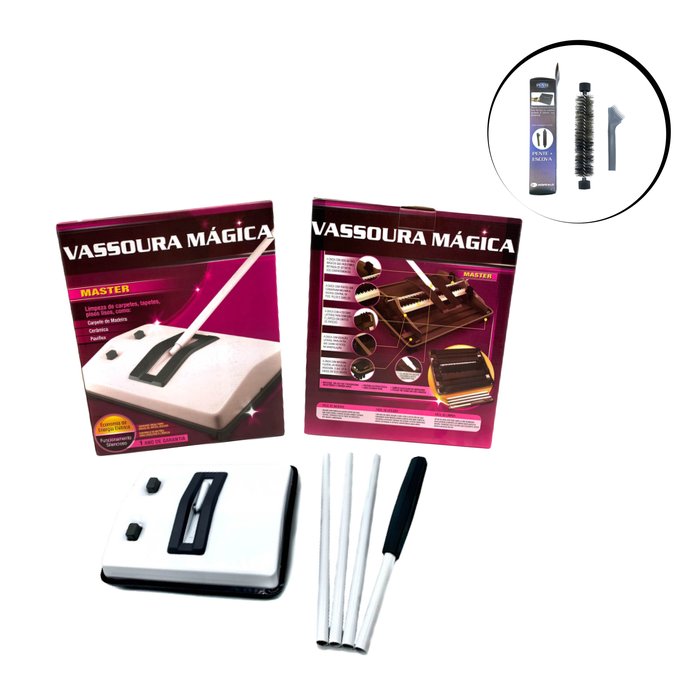 • Fácil de limpar, basta pressionar os botões na parte superior da vassoura