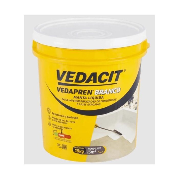 VEDAPREN BRANCO é uma manta líquida, de base acrílica e aplicação a frio sem emendas, pronta para uso e moldada no local.