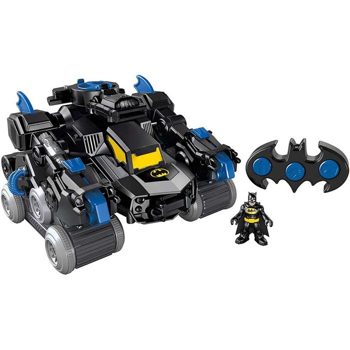 Pequenos heróis vão se divertir em dose DUPLA com o Veículo e Robô Batman - Batbot - DC Super Friends - Imaginext que é um robô e um tanque de combate do Batman! O robô que luta contra o crime se transforma em um tanque blindado irado, basta virar o disco ou usar o controle remoto. Além desta incrível transformação, as crianças podem dar continuidade à ação ativando a garra ou lançando discos contra os vilões mais perigosos de Gotham City!