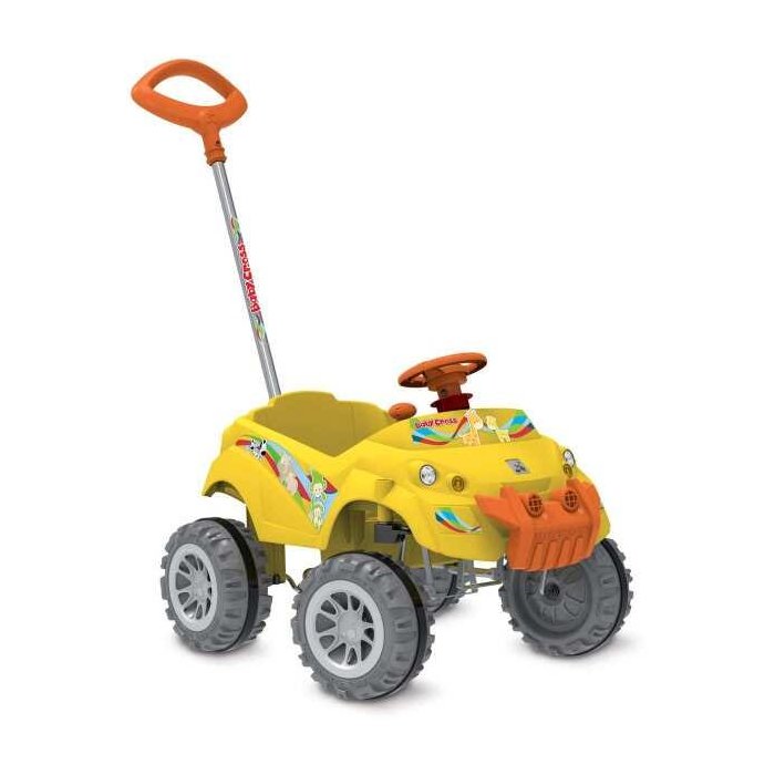 Um produto com duas funções, prático e moderno para o adulto e divertido para as crianças! Função passeio: o adulto conduz o Baby Cross como um carro de passeio. Função pedal: permite à criança brincar livremente comoum carro a pedal, bastando retirar o assoalho. Dimensões compactas para maior facilidade ao transportar e guardar o brinquedo. Piso retrátil converte rapidamente o brinquedo entre as funções passeio e pedal. Haste removível. Volante com buzina. Rodas com anel antiderrapante, paraum deslocamento suave e sem ruído. Idade: a partir de 02 anos. Peso máximo suportado: 20 kg.