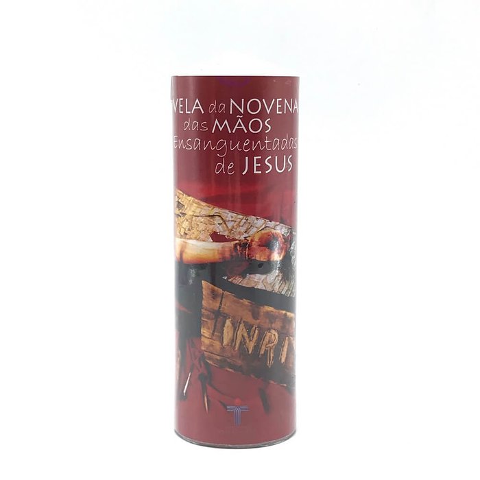 VELA NOVE DIAS MÃOS ENSANGUENTADAS DE JESUS A Vela Nove Dias Mãos Ensanguentadas acompanham as melhores tendências de fabricação com material de qualidade que possibilitam um "toque todo especial" para seu momento de oração. A luz, sinal da fé e oração, agora em belas velas com o tema das Mãos Ensanguentadas de Jesus confeccionadas em parafina. Material: Parafina e pavio. Tamanho aproximado: 16 cm (Altura) x 6 cm (diâmetro).
