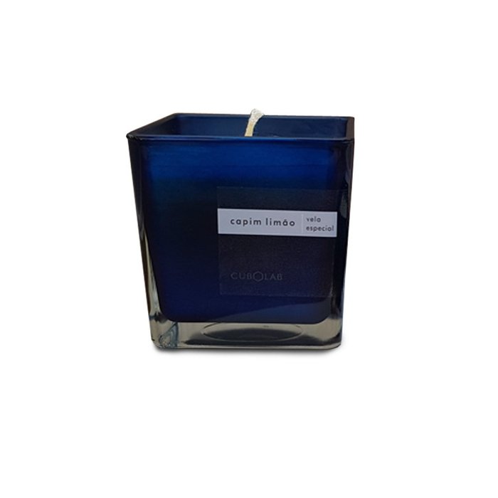 Vela Quadrada Vidro Azul Capim Limão 10x10 Cubolab Azul