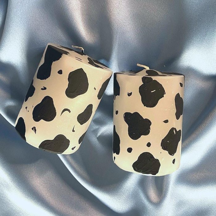 Velinha Vaquinha - Pop Candles - Pintada À Mão - Felicittá Pop Branca e Preta