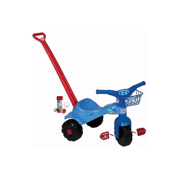 Velocípede Motoquinha Velotrol Triciclo de Empurrar Rosa Infantil Menina Cestinha ***ACOMPANHA UM LINDO BOLHA DE SABÃO. COR E ESTAMPA ENVIADOS CONFORME NOSSO ESTOQUE*** Descrição Triciclo Infantil Tico-tico Tubarão Com Alça 2131 Magic Toys Tico-tico Tubarão Código do produto: 2131 Acompanha cestinha Assento anatômico Haste removível Selo de segurança do Inmetro: CE-BRI/IQB 001187 NM 300/2002 – OCP 006 Comprimento: 88cm Altura: 85cm Largura: 44cm Peso máximo suportado: Até 20Kg Peso do produto (sem caixa): 2,03Kg Garantia de 90 dias, por defeito de fabricação.