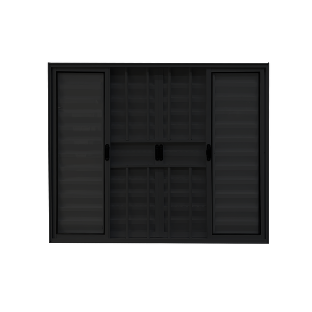 Veneziana 6 Folhas Aluminio Preto com Grade 1,00x1,00 Linha 18 Modular Preto