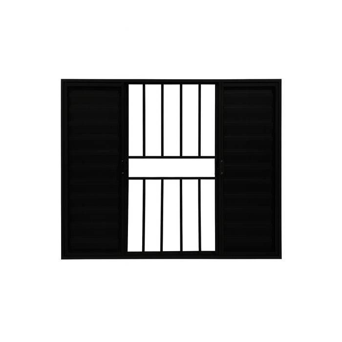 Veneziana 6 Folhas Aluminio Preto com Grade 1,00x1,50