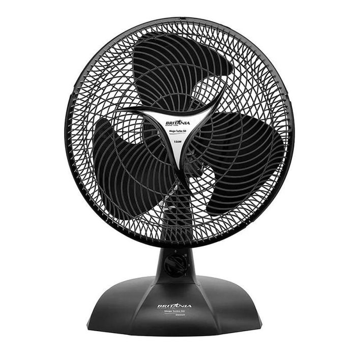 Conteúdo da Embalagem - 01 Ventilador de Mesa Britânia Mega Turbo 50 com 3 Velocidades - Preto